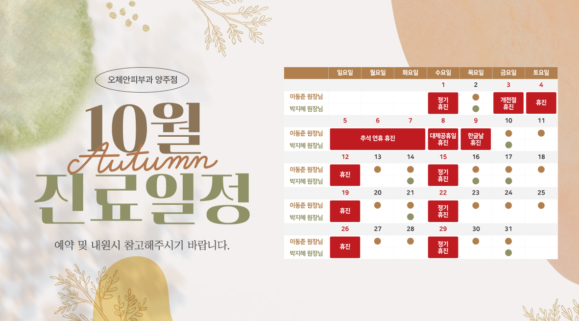 - 토요일 AM 09 : 00 - PM 02 : 00 (토요일 점심시간 없이 진료)