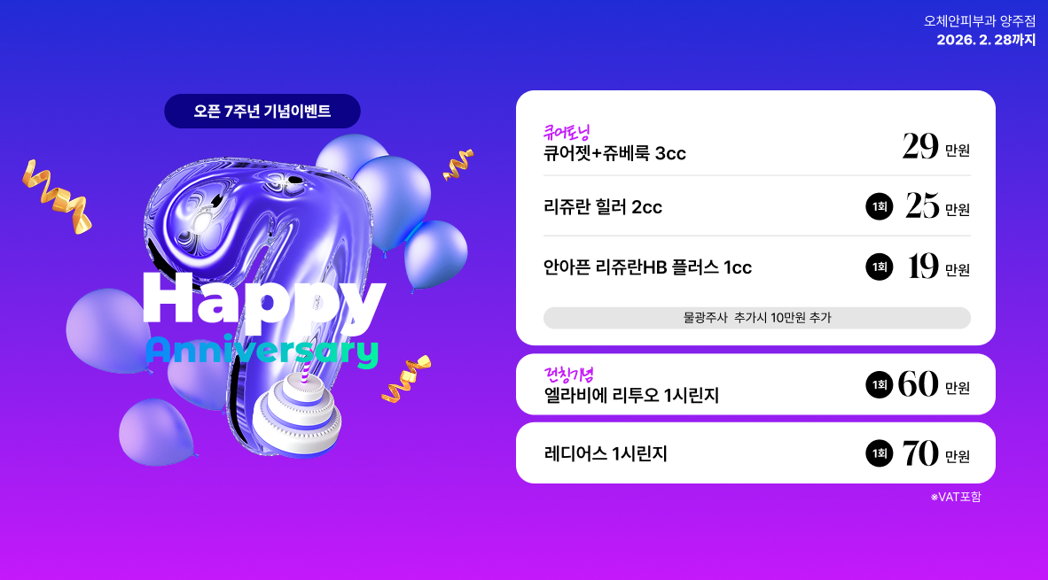 모든 치료와 시술은 개인별로 효과 및 결과에 차이가 있을 수 있으며 부작용이 발생할 수 있으므로, 반드시 의료진과 충분한 상의를 거친 후에 결정하시길 바랍니다.